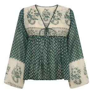 Floral Printed Boho Peplum Top for Women – Green & Cream