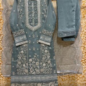 Luxury Embroidered Suit Set for Women – 3 Piece Set (Top, Bottom & Dupatta)
