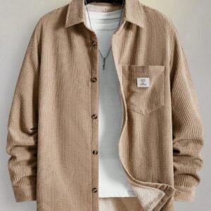 Beige Corduroy Casual Shirt for Men
