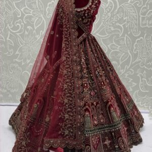 Bridal Maroon Velvet Embroidered Lehenga – A Royal Masterpiece for Your Big Day