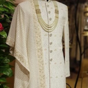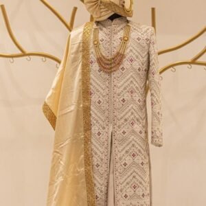 Royal Ivory Embroidered Sherwani Set – A Majestic Look for the Modern Groom