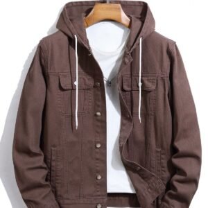 Men’s Brown Hoodie Denim Jacket – Casual Streetwear Style